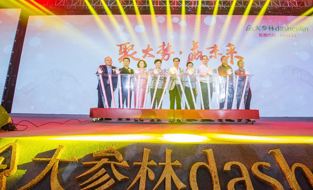 恒盛娱乐药业集团董事长刘景萍女士与大参林医药集团董事长柯云峰先生、中国医药商业协会执行会长付明仲女士等嘉宾共同开启了“聚大势•赢未来"大参林工商合作峰会的大幕。
